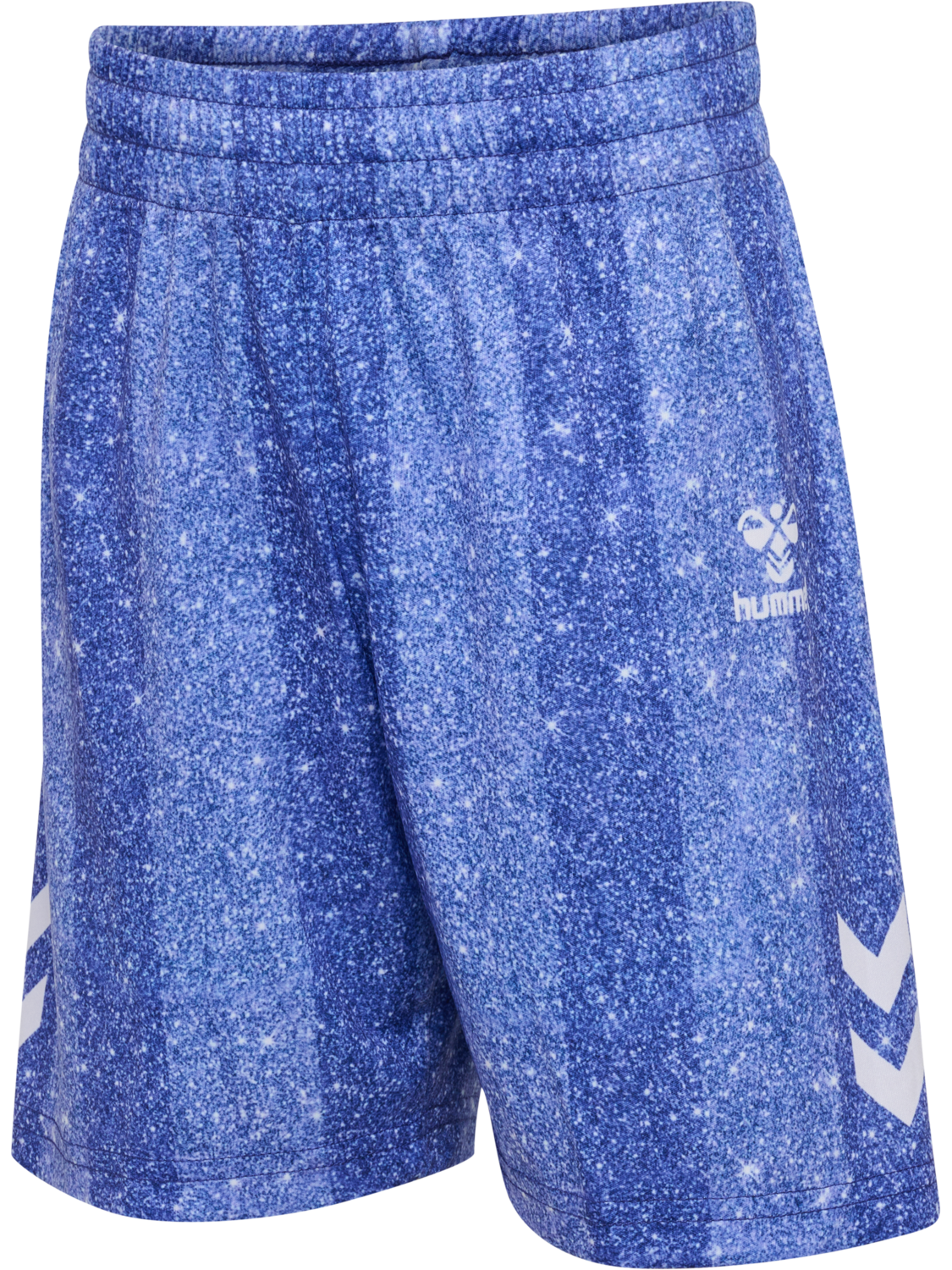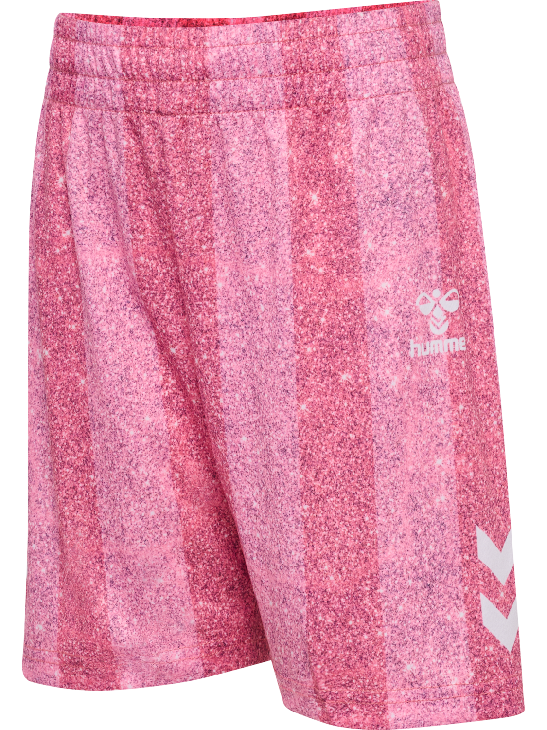 The hmlSHIMMER T-SHIRT S/S is crafted from smooth, soft knitted interlock material. It features a decorative all-over print with a shimmer effect alongside short sleeves with classic hummel chevrons on the shoulders.